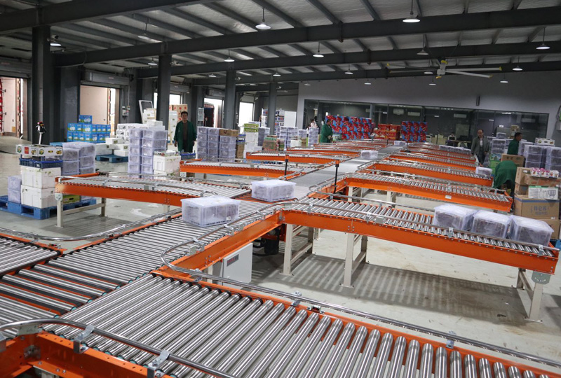 蘇洪鮮食南通物流配送中心輸送分揀項目集成了90度皮帶轉(zhuǎn)彎輸送機、皮帶輸送機、輥筒輸送機、雙向頂升移載機等多種物流自動化輸送設(shè)備,搭建人機實時交互式系統(tǒng)。