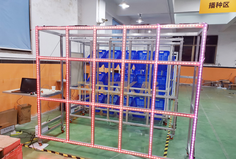 鞋服行業(yè)燈帶式播種墻作業(yè)場(chǎng)景應(yīng)用,識(shí)別速度更快速、精準(zhǔn),RF槍掃描即刻燈帶指示相應(yīng)位置,視覺定位,無(wú)需人腦二次反應(yīng)進(jìn)行播種位置尋找,揀選效能大幅提升。